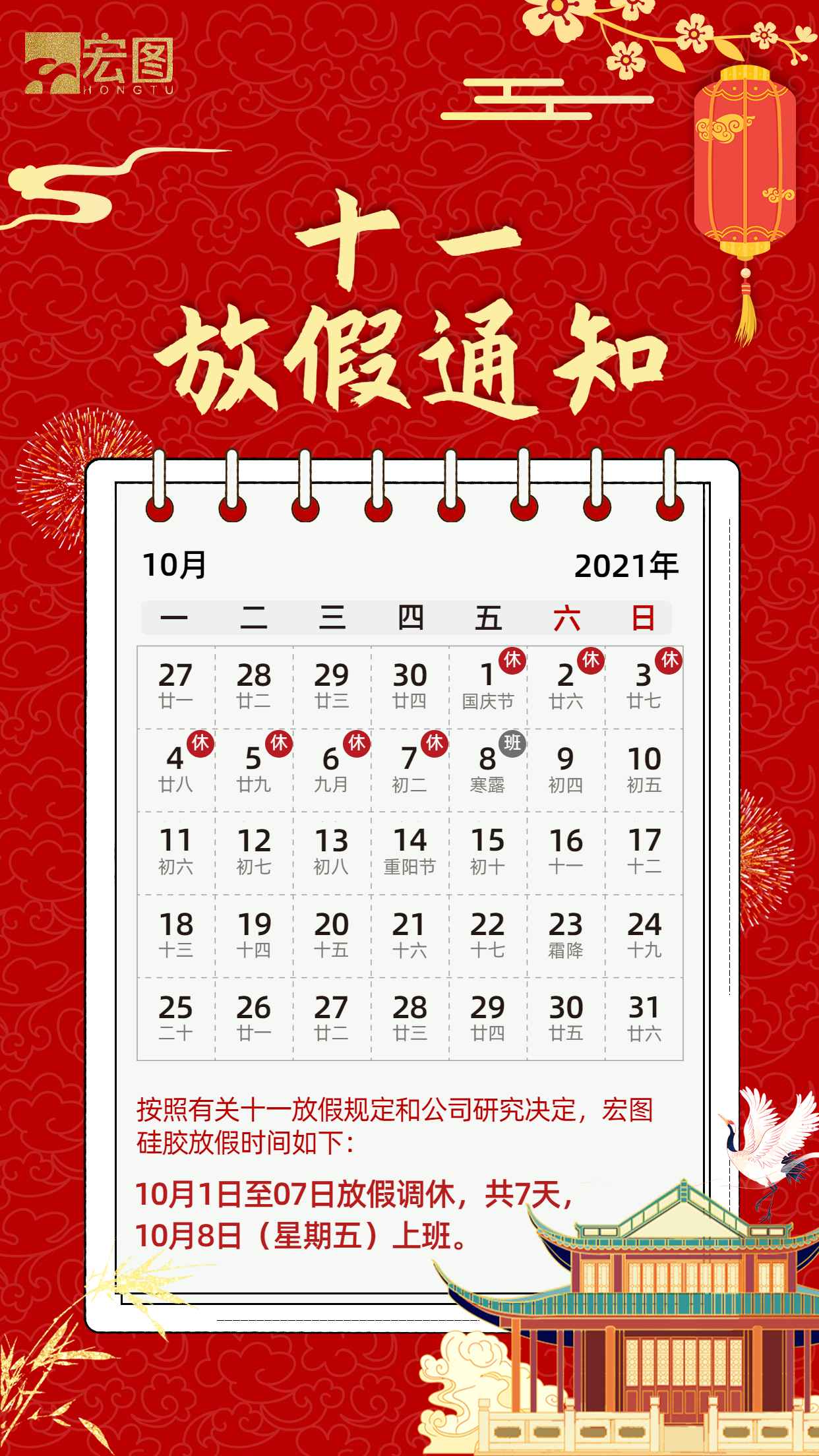 宏圖硅膠國慶放假通知!