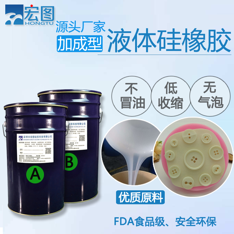 加成型液體硅橡膠也叫AB雙組份液體硅膠,使用時按重量比1:1進行配比,可室溫固化成型也可加溫固化成型。加溫到一定溫度硅膠可在數(shù)十分鐘內(nèi)完全固化。